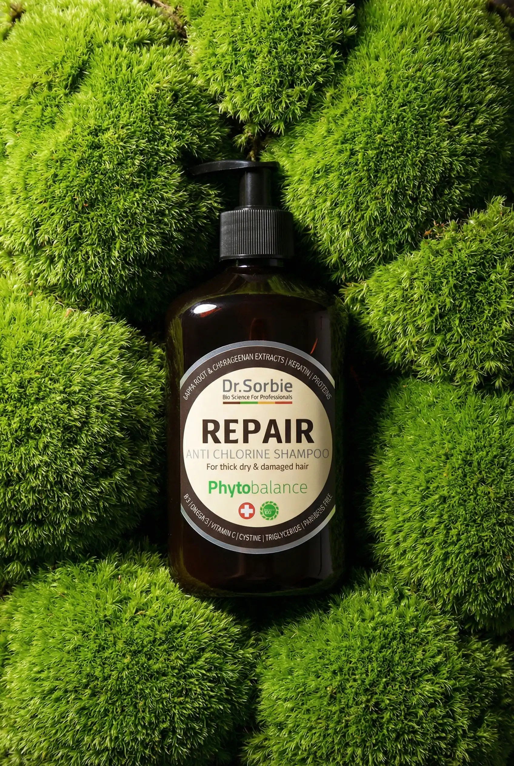 Восстанавливающий фитошампунь-антихлор «Repair Shampoo» Восстанавливающий шампунь создан на основе натуральных ингредиентов специально для сухих, поврежденных, средних и толстых волос. Деликатно очищает кожу головы и волосы от загрязнений и хлора. Восстанавливает структуру волос после агрессивных воздействий. Интенсивно питает, увлажняет структуру поврежденных волос.